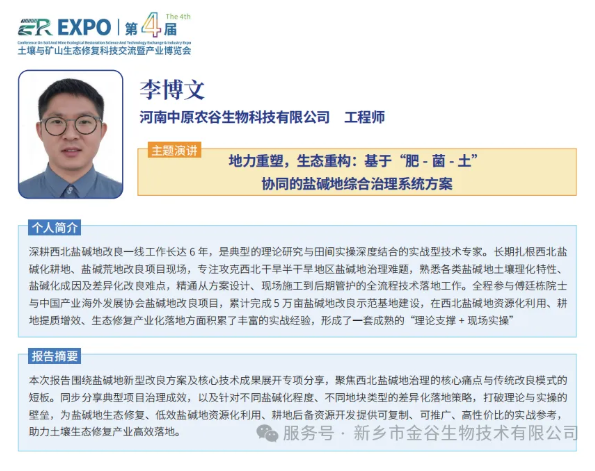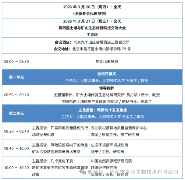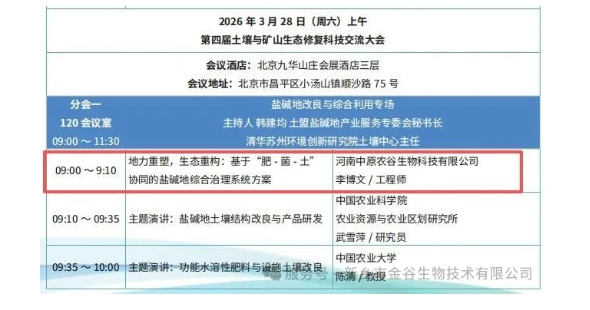 重磅亮相|中原農(nóng)谷&金谷生物出席中關(guān)村論壇土壤修復(fù)大會(huì),核心技術(shù)斬獲行業(yè)高度認(rèn)可时间:2026-03-30 【转载】 2026年3月27-28日,中關(guān)村論壇 第四屆土壤與礦山生態(tài)修復(fù)科技交流大會(huì)在北京九華山莊會(huì)展酒店隆重召開。作為國內(nèi)土壤與礦山生態(tài)修復(fù)領(lǐng)域具有影響力的專業(yè)盛會(huì),本次大會(huì)以“綠色修復(fù)、科技賦能、產(chǎn)業(yè)協(xié)同”為核心導(dǎo)向,匯聚了全國科研院所、政府部門、中電建、中能建及行業(yè)專家數(shù)百位代表,共同圍繞受損土壤治理、礦山生態(tài)重建、鹽堿地綜合利用等核心議題展開深度研討,搭建起“產(chǎn)學(xué)研用”一體化的技術(shù)交流與產(chǎn)業(yè)合作平臺(tái)。 農(nóng)業(yè)農(nóng)村部耕地質(zhì)量監(jiān)測(cè)保護(hù)中心 李榮/原副主任、推廣研究員 河南中原農(nóng)谷生物科技有限公司憑借在鹽堿地改良、微生物土壤修復(fù)領(lǐng)域的深厚技術(shù)積累與規(guī);瘧(yīng)用成果,受邀成為本次大會(huì)的重要參與單位,在中關(guān)村土壤會(huì)議獲得大家高度認(rèn)可和贊揚(yáng)!
